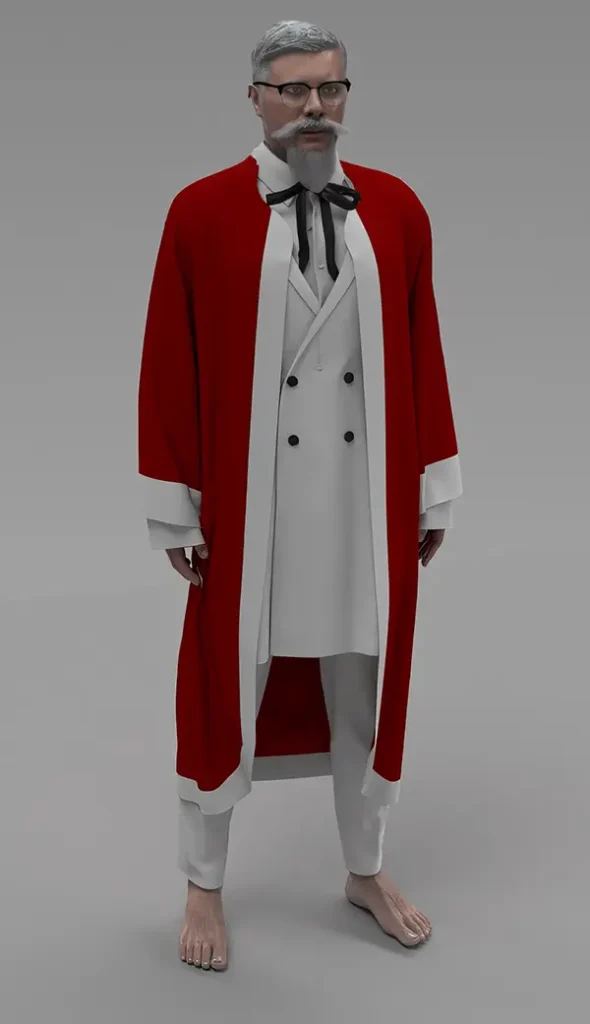 Костюм Санты мы также создали вручную. Мы смоделировали одежду отдельно и адаптировали её под 3D-модель.