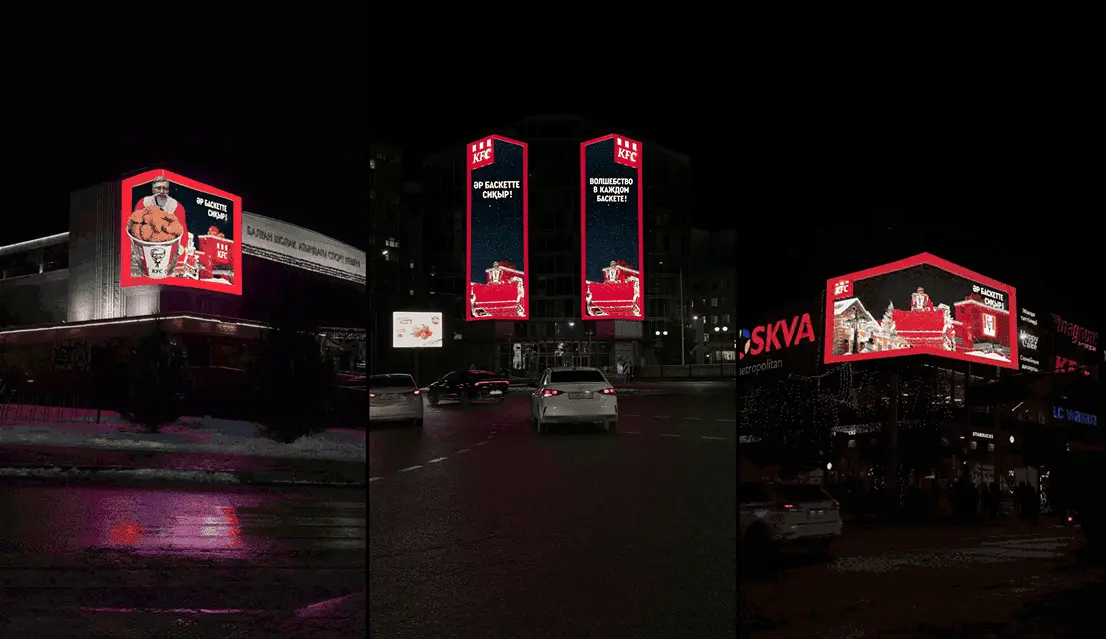 Нам предстояло разработать яркую 3D-анаморфную CGI-рекламу для бренда KFC. Проект должен был работать на современных digital-билбордах.