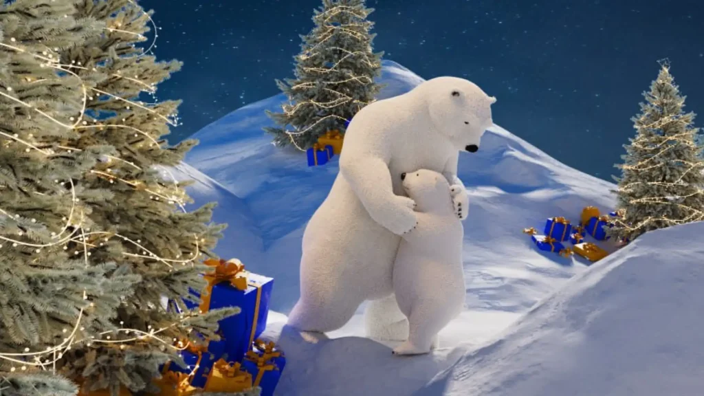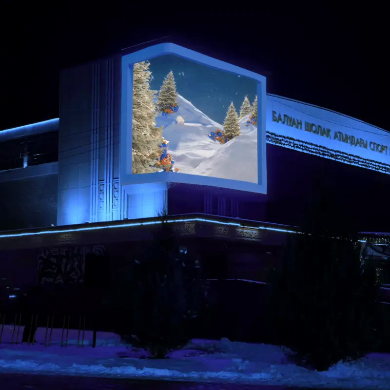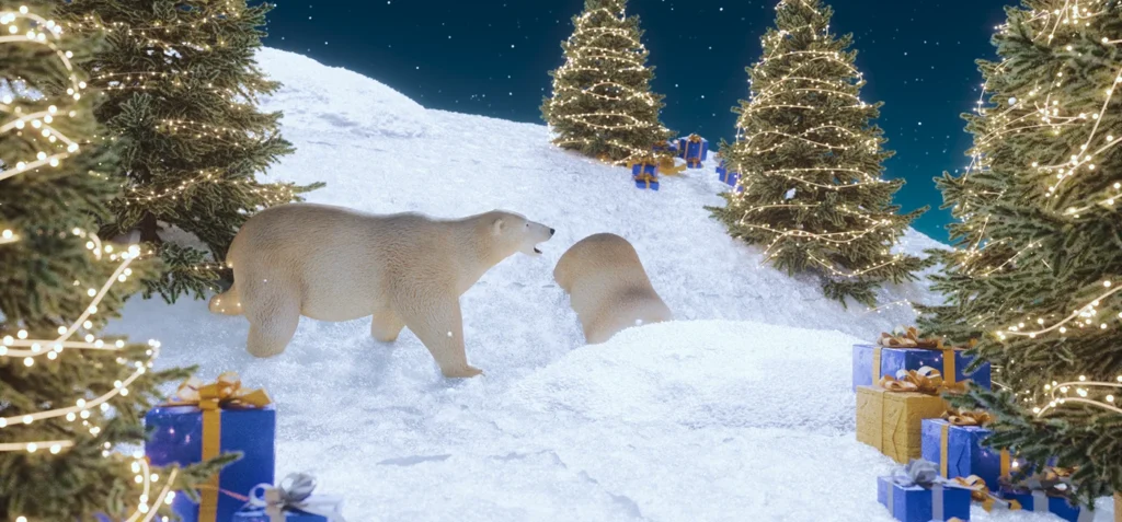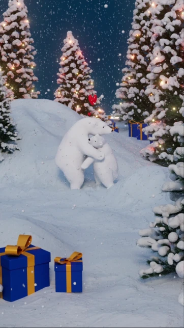 Теги: 3D-анаморфный билборд, naked-eye 3D, DOOH-реклама, CGI-коммерческий ролик, адаптация под уличные 3D-экраны, кастомное 3D-моделирование сцены, анимация и риггинг персонажей (медведи), симуляция снега, работа с несколькими ракурсами и перспективами, подготовка под разные размеры экранов, работа с отражениями и стеклянными поверхностями.